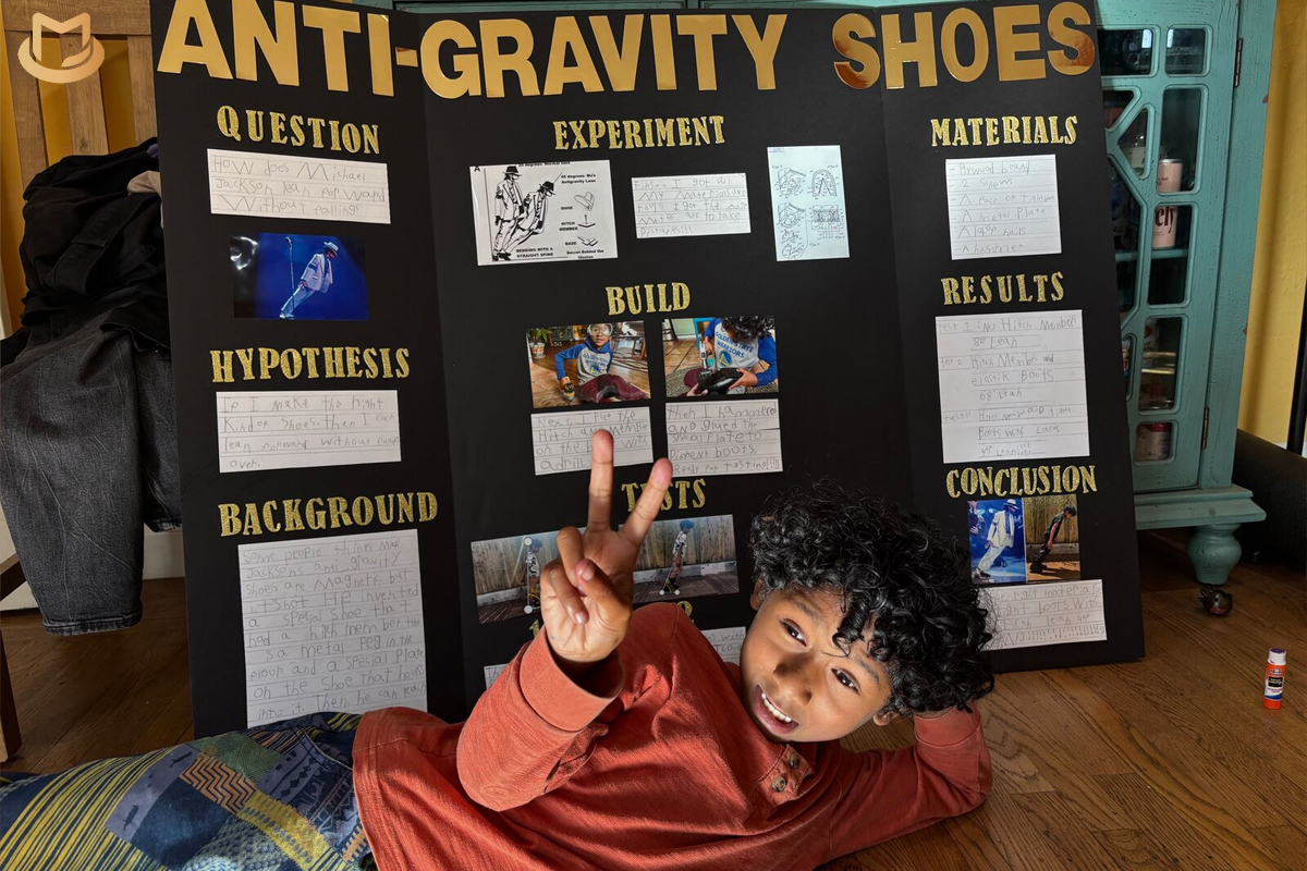 That curiosity became the foundation for Jonah’s science fair project. His first theory involved magnets: logical, but incorrect. A little research led him to Michael Jackson’s actual 1992 patent for the anti-gravity shoe design, which inspired Jonah and his mom to recreate it themselves.