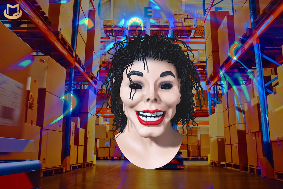 In Workflow, a spectral Michael Jackson Halloween mask recites a surrealistic quarterly earnings reports. Building on a 2017 essay by artist Aria Dean titled “Notes on Blacceleration,” the short film centers on the ways in which the Black subject grapples with its commodified status within the labor market despite—or, resultant of—its own history as a commodity, stemming back to the Trans-Atlantic slave trade. Completed during Leonard’s residency at Pioneer Works in 2021, the video utilizes uncanny humor as a mechanism to expose the shared grammars inherent in Afro-pessimism and speculative finance.