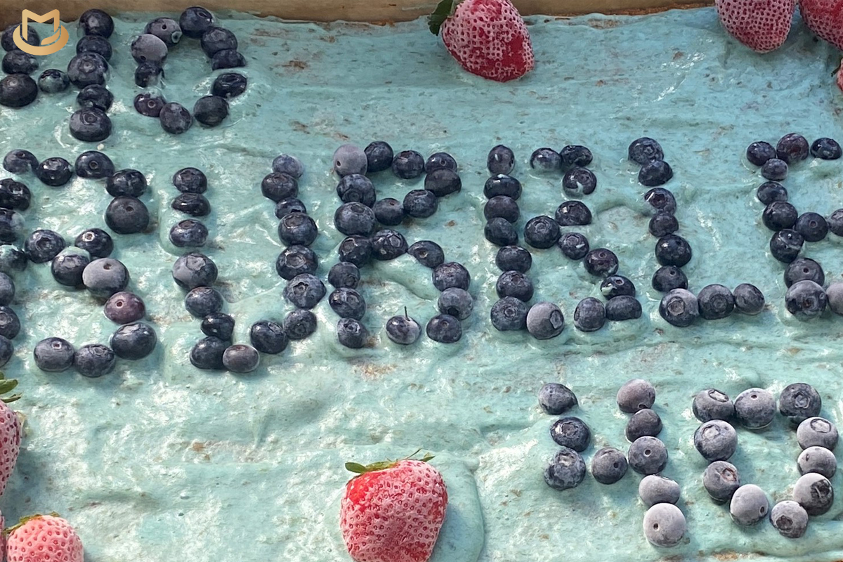“We frost it with mashed bananas and add a little bit of blue food coloring … and then we wrote his name in blueberries,” Ragan said.