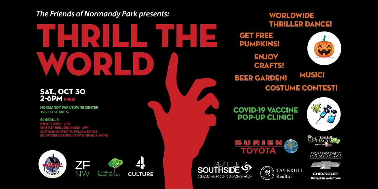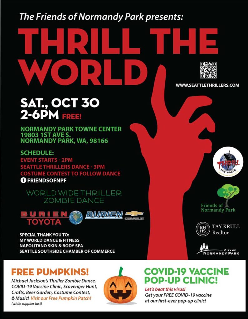 The Friends of Normandy Park Foundation will be presenting ‘Thrill the World,’ a partnership with the Seattle Thrillers dancers on Saturday, Oct. 30, 2021, from 2 – 6 p.m.