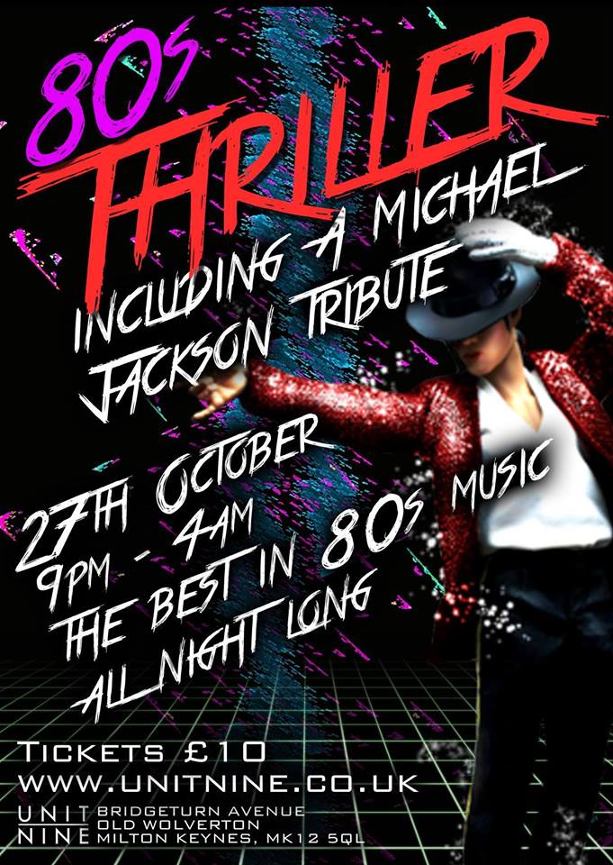 Taking you back to the sound of the 80’s with THRILLER! A night of pure 80’s music including a LIVE performance from one of the best Michael Jackson Tributes in the UK!