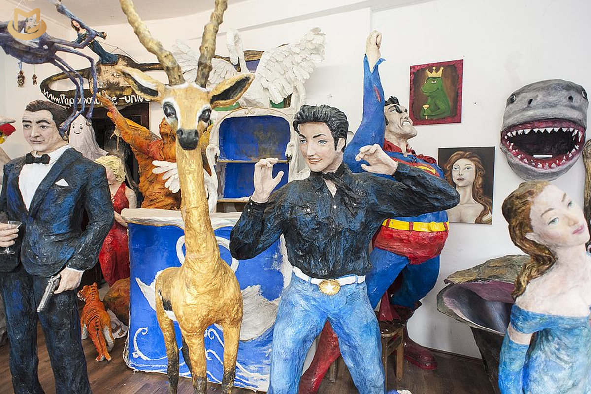 She has created a full papier-mâché universe in Fürth, Germany where she displays her art.