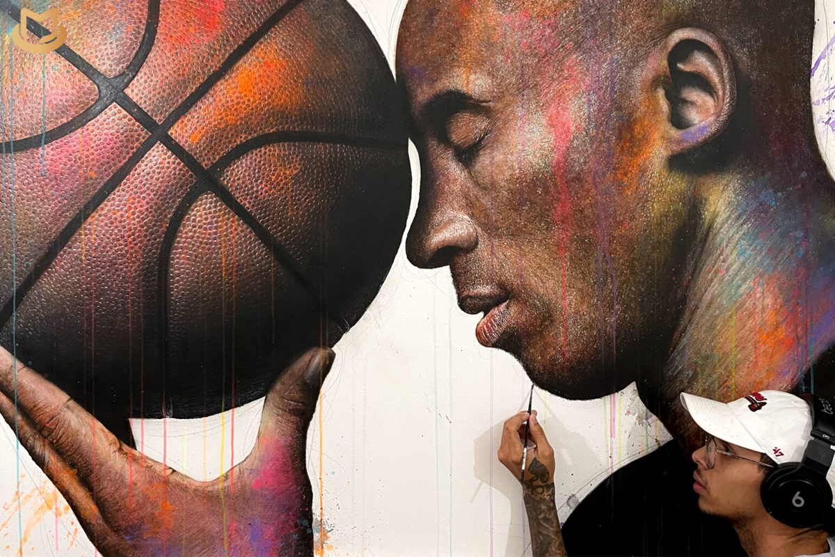 His most recent work is an accumulation of styles that he has practiced and mastered over the years. Each creation is spontaneously pieced together through the blending and layering of a wide range of color to create large, iconic portraits that are hyper-realistic but also possess abstract characteristics.