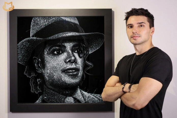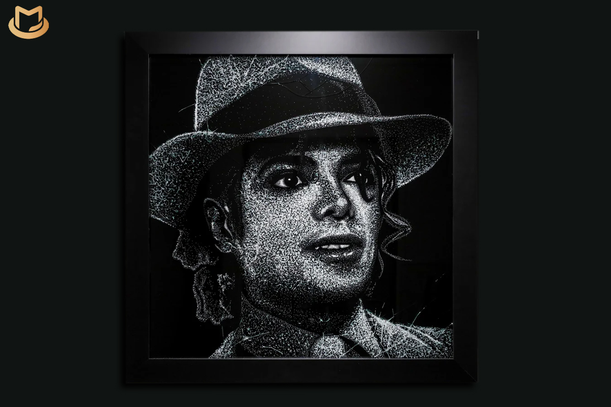 The result is a portrait that feels both fragile and powerful, carrying the reflective shimmer of broken glass while embodying the unbreakable legacy of Michael Jackson himself.