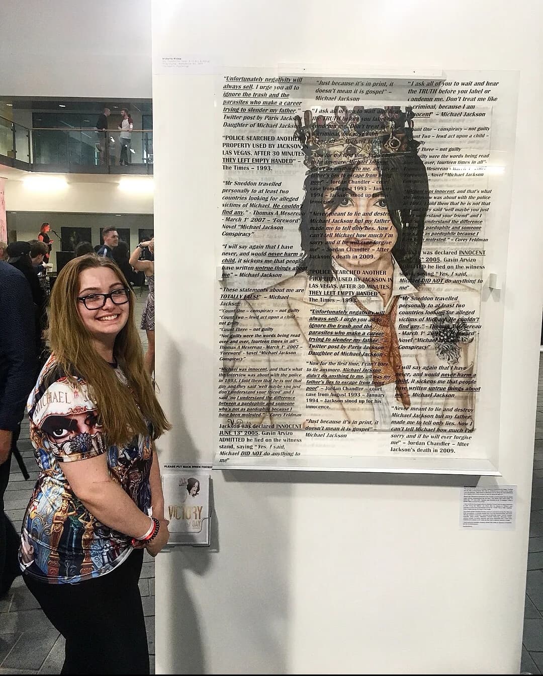 During the evening of the private viewing of the exhibition (June 10th 2022) at the university, I was in my space with some Michael fans. A woman found out it was my work as she appears like a tutor/critic from the art world, because of how our communication was going, and she did state about how I based work on a controversial figure but created it in such a way that what I intended to create through my work has been portrayed perfectly, and this feedback made me ecstatic because every element of my work has been thought of and to receive this from a complete outsiders perspective, within the art world, fills me with such confidence.”