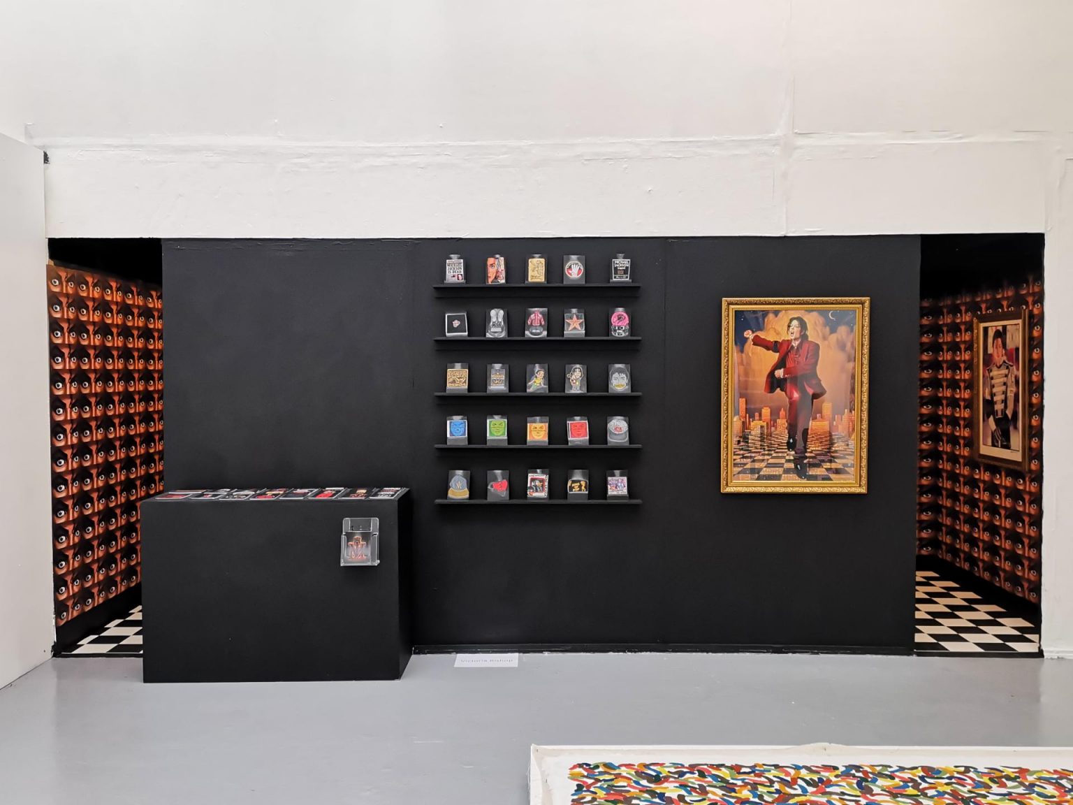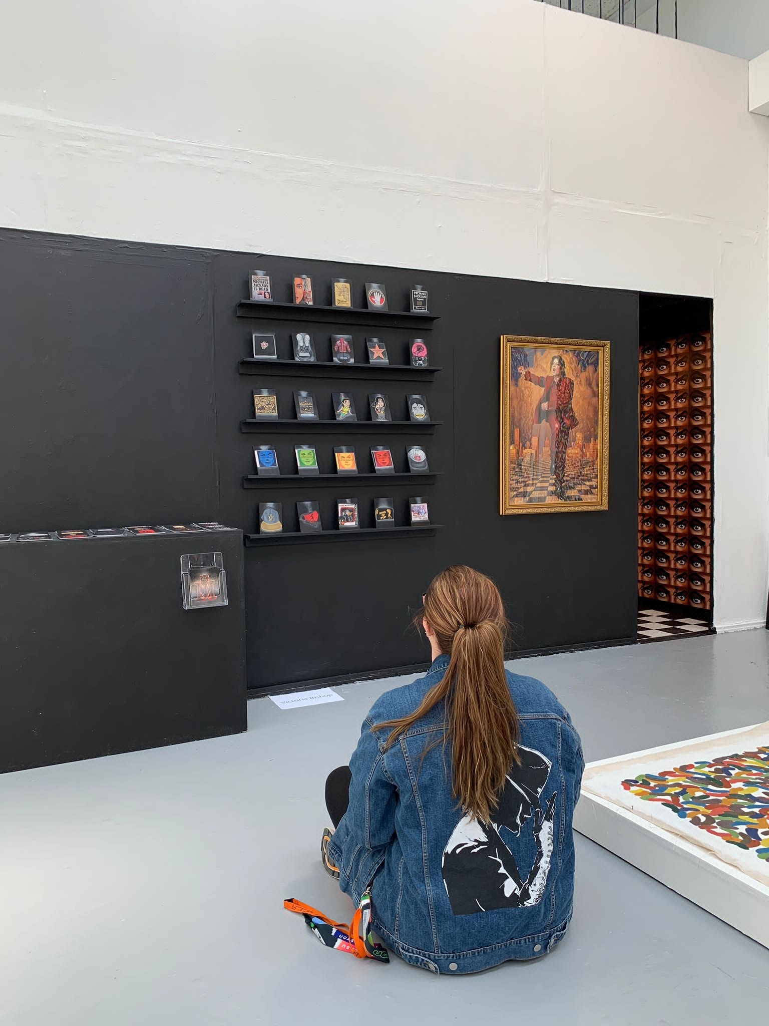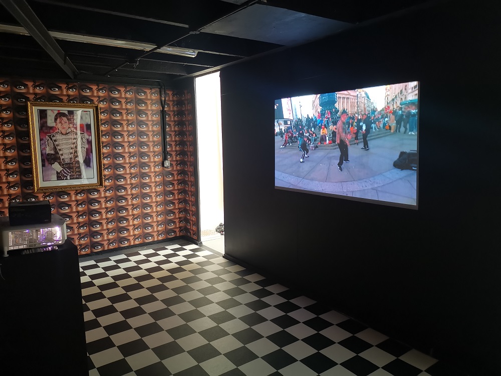 A video portraying community, connecting fandom with hysteria is included, which in the space of 6 years since I fully joined the community and went to fan-based Jackson events such as house parties and flash-mobs in London, going on Jackson-themed holidays in LA and Vegas, also to Jackson tribute shows and The Jacksons concert. The addition of this piece results in a total of 50 works on show, which is the age Jackson passed. My conclusive goal is to communicate what it is like to partake in fandom regardless of the subject. This exaggerated but conceptually accessible shrine aims to relate to the viewer, challenge their ideologies surrounding fanaticism and serve to comfort one’s own individual sense of what it means to be a fan.