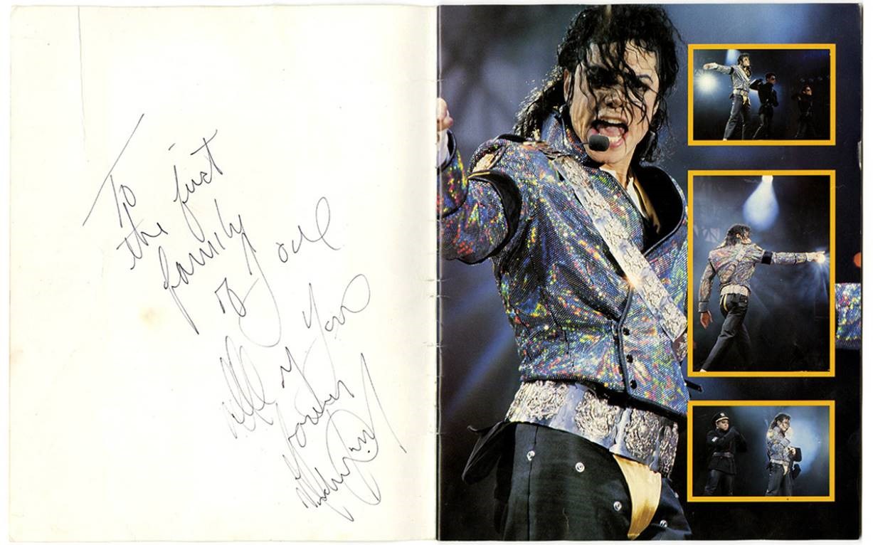 Items such a Military-style Jacket by Tompkins and Bush, few owned and worn Fedora, few aviator sunglasses, a Bellhop Uniform or Leather Belt and many signed items such as CDs, Box sets, Photos but also some tour merchandise items such as passes or t-shirts from the Dangerous tour.