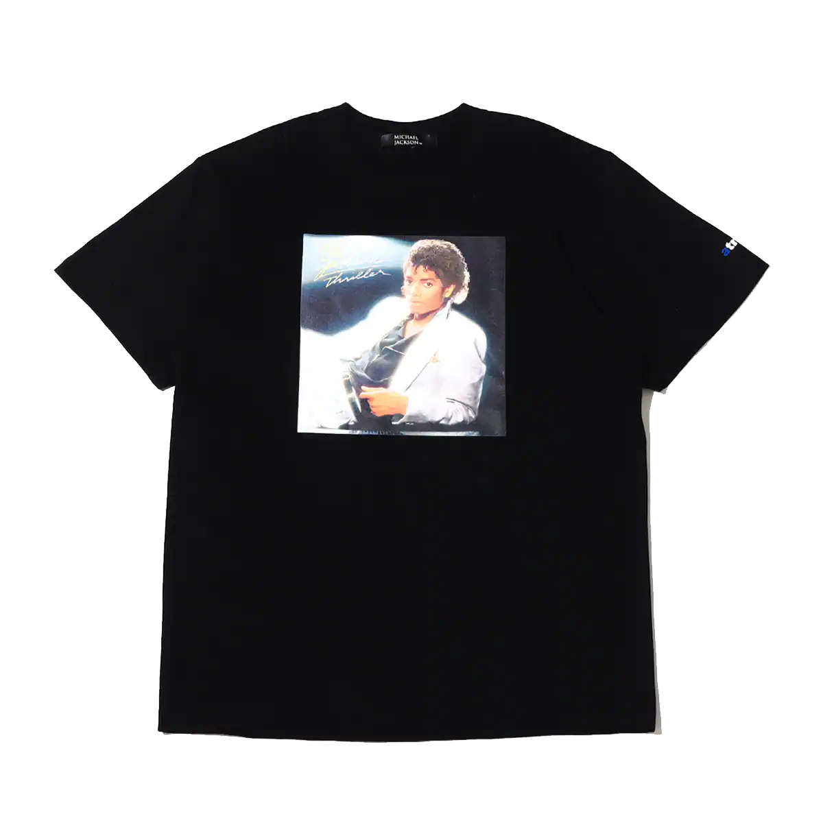 This collection features the masterpieces “Bad” and “Thriller”. The cover design of “Bad” and “Thriller” and one scene of “Thriller” PV are adopted for the front design. On the back, the graphics of “King of Pop” are printed. The ATMOS logo is printed on the left sleeve to symbolize that it is a collaboration item.