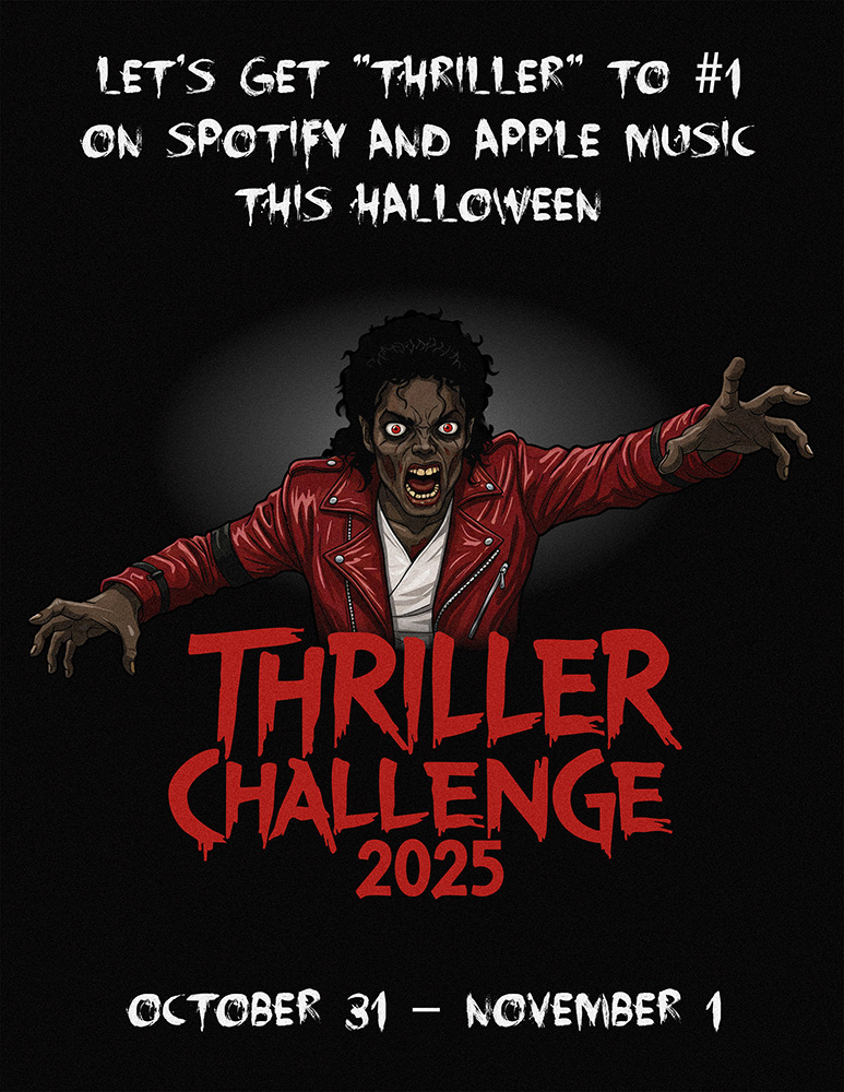 And finally, the fan campaign is live and running! The goal is to get the song “Thriller” to #1 on Spotify and Apple Music on Halloween and the campaign runs from October 31 to November 1, targeting the two biggest streaming days to make “Thriller” Halloweens biggest hit. For more information about the #ThrillerChallenge2025, visit the fan website.