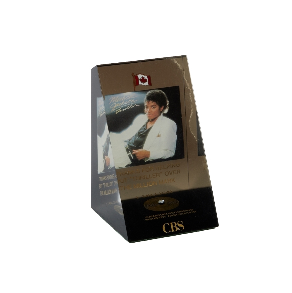A CBS Canada paperweight commemorating the one million dollars in sale made by Michael Jackson for his sixth studio album, Thriller, in 1982.