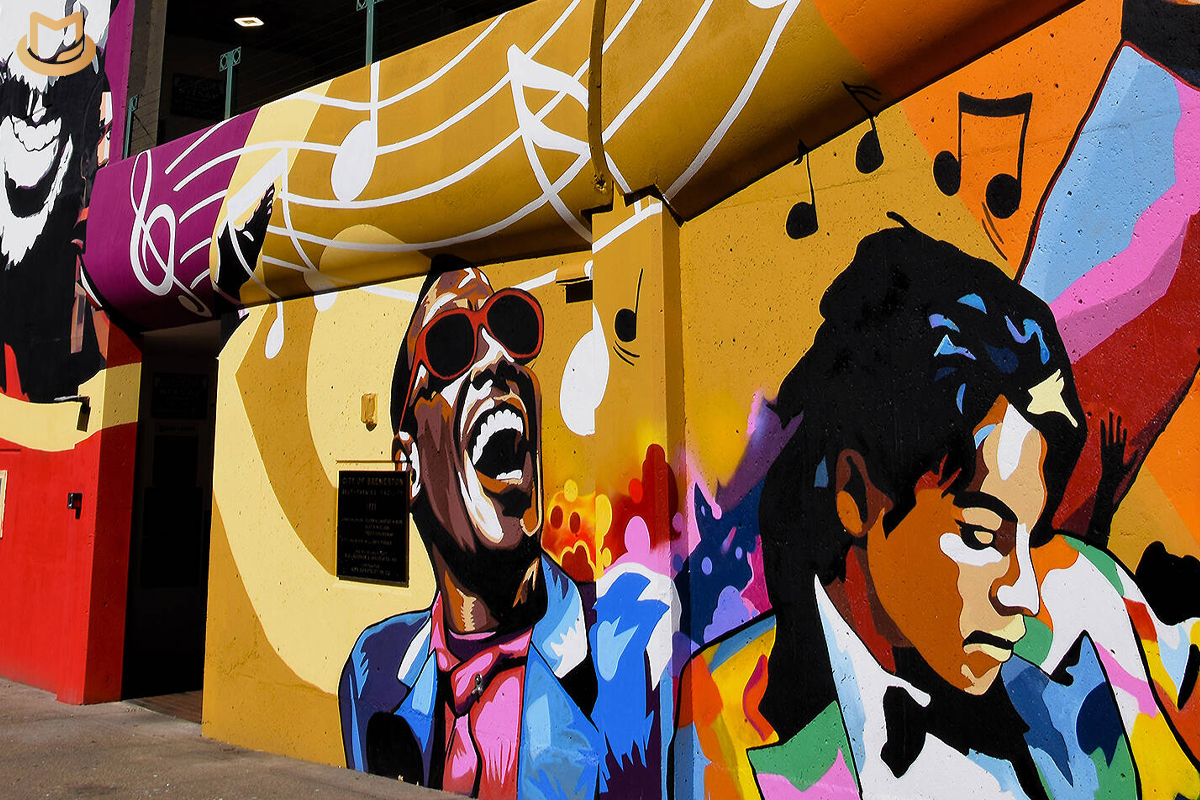 As described on the city’s website, the project was propelled by a “grassroots consortium of active and interested citizens, professional groups and developers.” With the blessing of music legend Quincy Jones, this group united around a vision to revive the charm of 4th Avenue, once a bustling center of daily life and commerce. The mural is part of a comprehensive streetscape improvement aimed at inclusivity and accessibility, featuring elements such as “street furniture, festival lighting, and interactive musical equipment.”