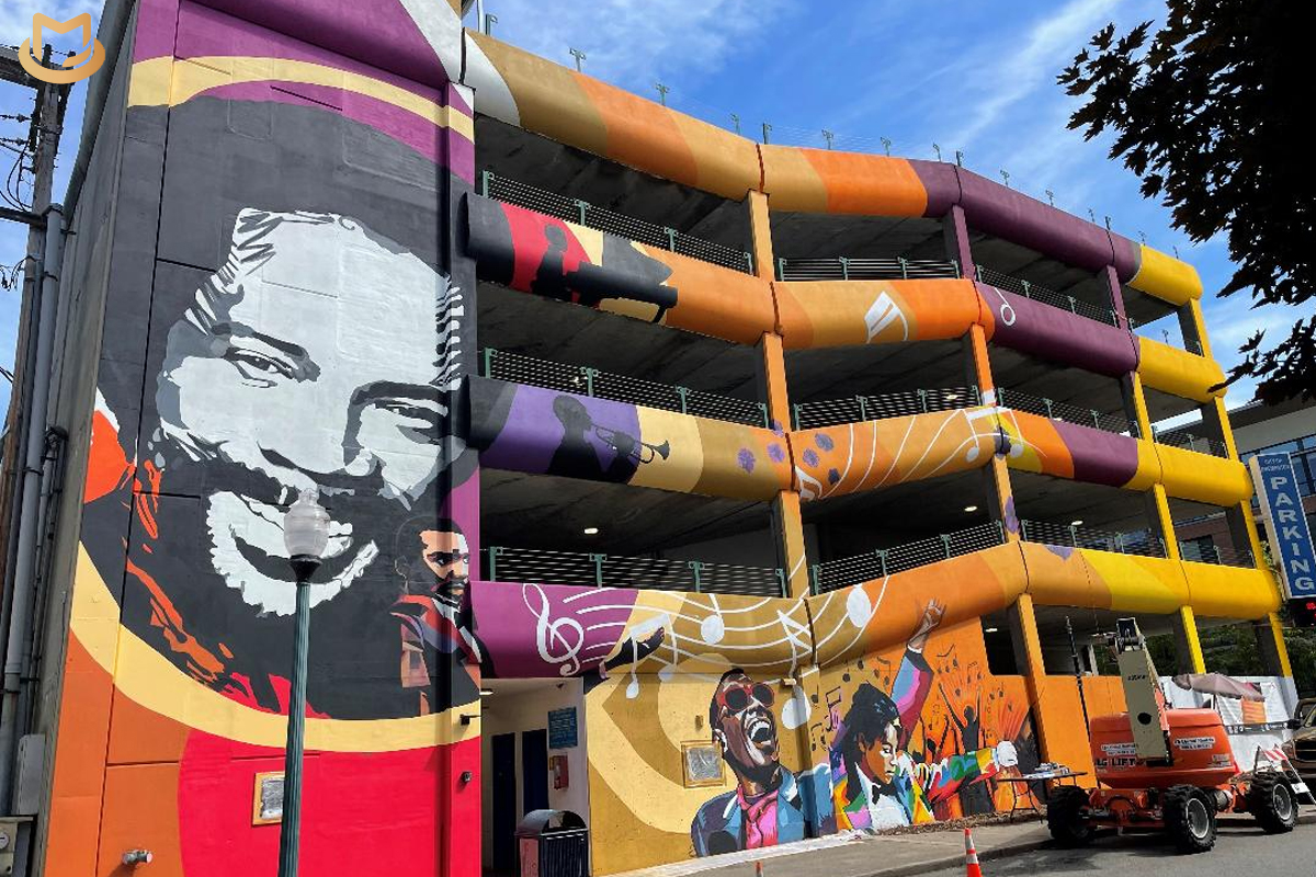 A striking new mural now enhances the 4th Street parking garage near the Roxy Theatre and the Kitsap History Museum, commissioned by the city of Bremerton for $45,000 and painted by Louisiana-based public artist KaDavien Baylor.