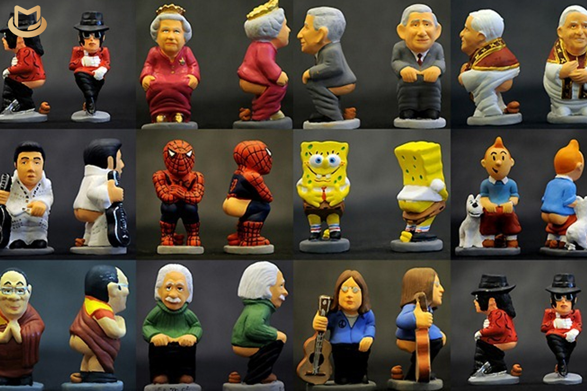 The Caganer figurine is often portrayed in various forms, representing different professions, celebrities, or fictional characters. Modern versions may feature politicians, athletes, or popular figures from pop culture. The inclusion of the Caganer adds a touch of humor and irreverence to the otherwise solemn nativity scene, making it a distinctive and cherished Catalan Christmas tradition.